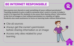Teachers and staff in Batavia Public Schools will be focusing on seven areas of Digital Citizenship in kindergarten through twelfth grade to help our students make good decisions about how they use their devices and the internet. Adapted from the ISTE Standards for Students and the Google Be Internet Awesome campaign, these areas encourage our students to be responsible, respectful, and safe in the digital world. Parents and family members can spread this message by reminding students of these expectations each time they use a device to access the internet either at school or at home.